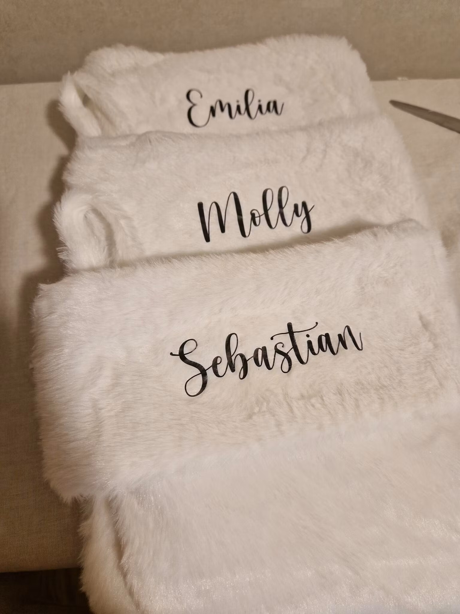 Julstrumpa lyx 179 kr Produkten är tyvärr slut i lager. :( Produktbeskrivning Recensioner NYHET!En lxiga vit julstrumpa med ett valfritt namn som ger en mysig och personlig känsla.Märkmedtod: TryckHöjd: 46 cmBredd: 30 cmTextfärg: Guld, Silver, Svart, Grå, Röd eller RoséMaterial: Polyester (Pälsimitationstyg)
