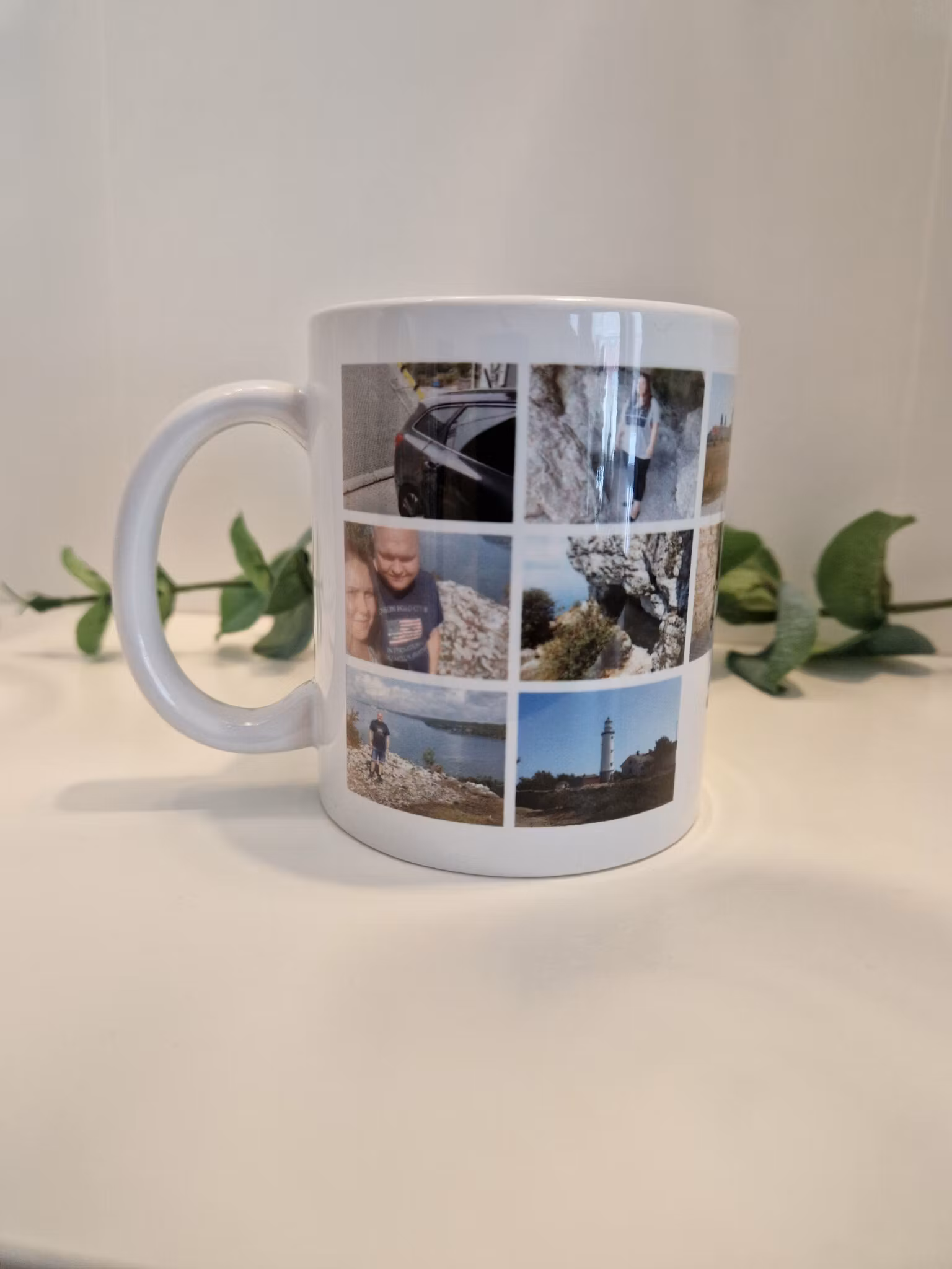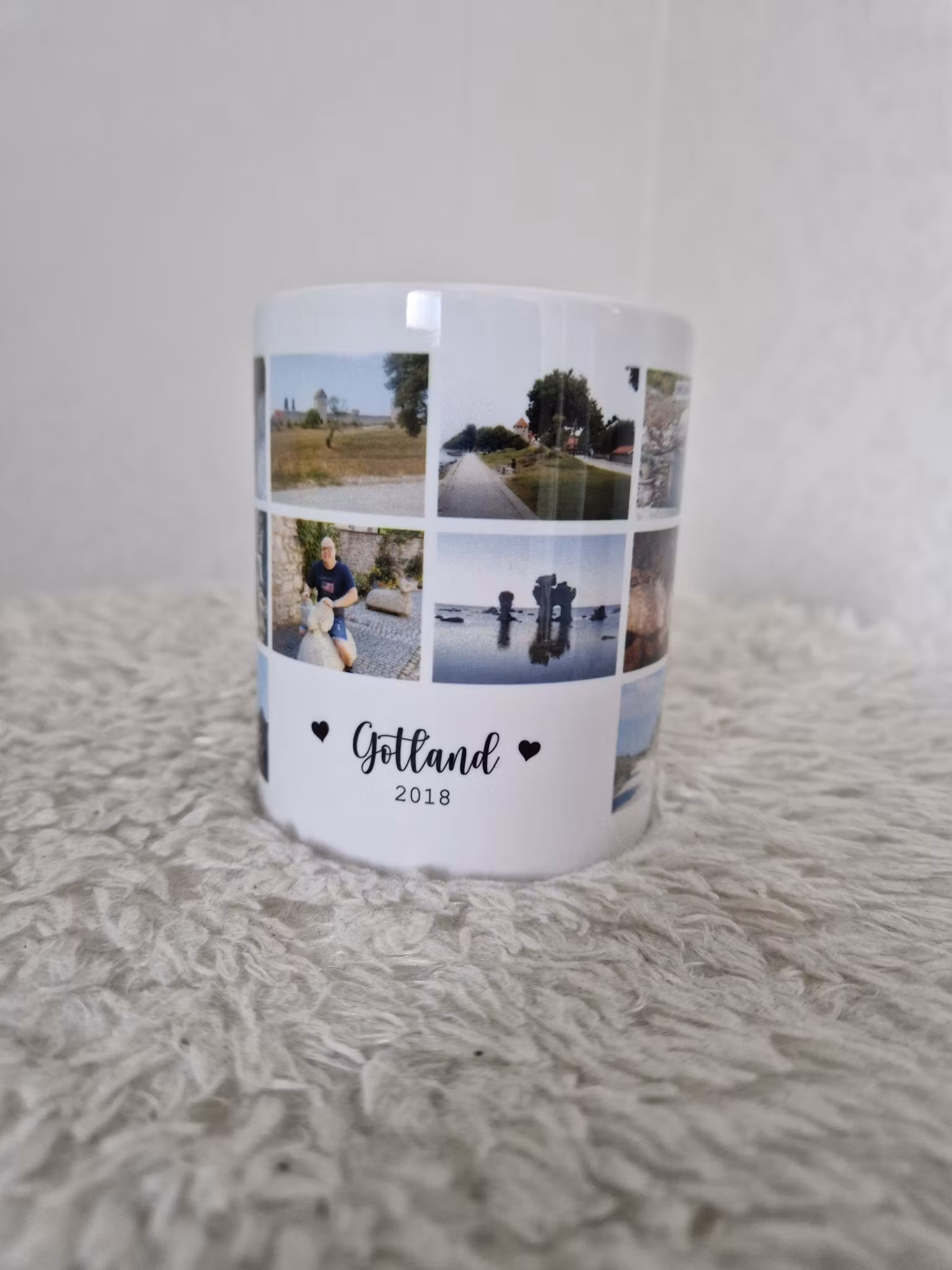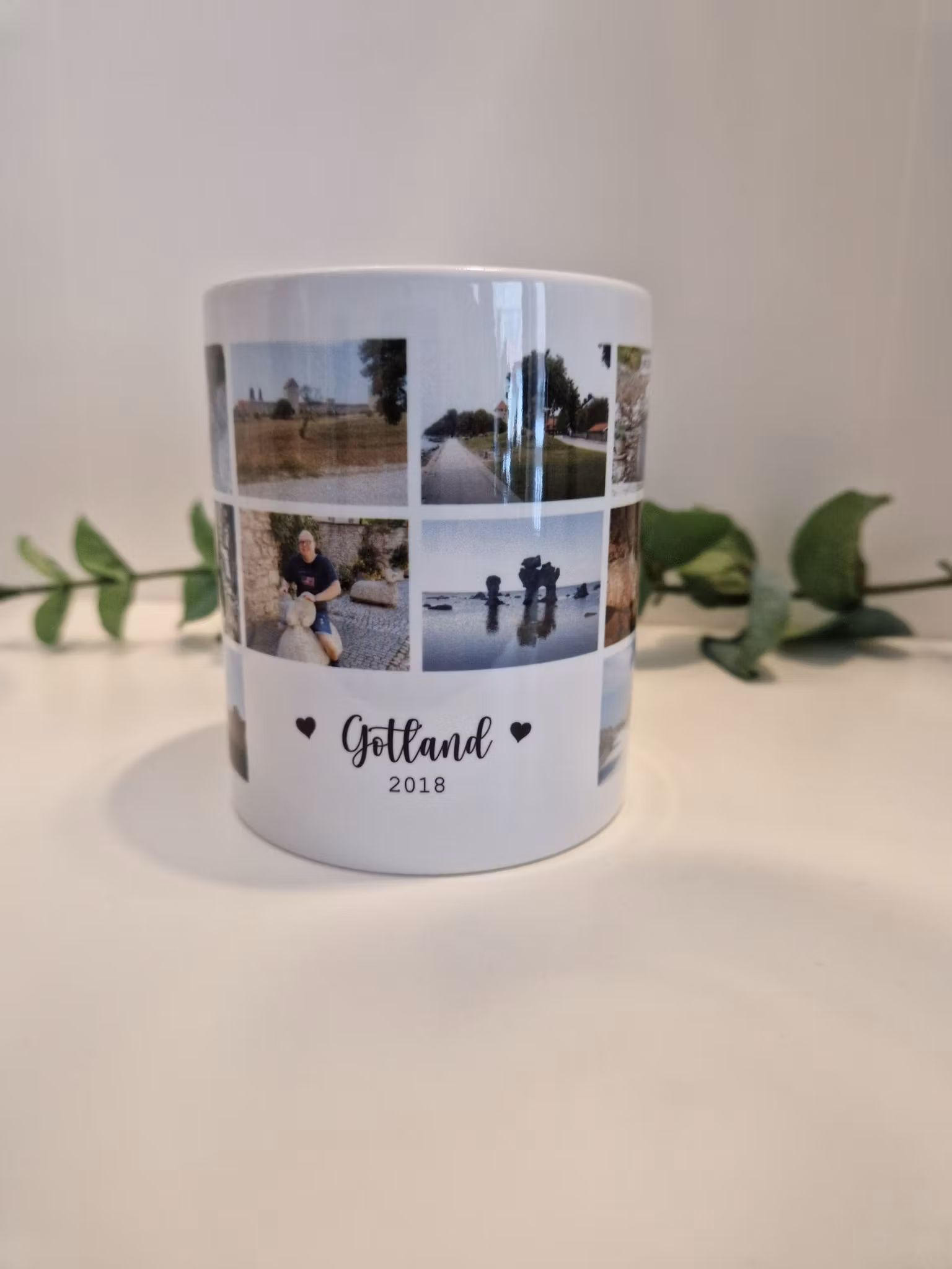 Skapa en mugg med dina bästa minnen, dina favorit foton och en text som passar.