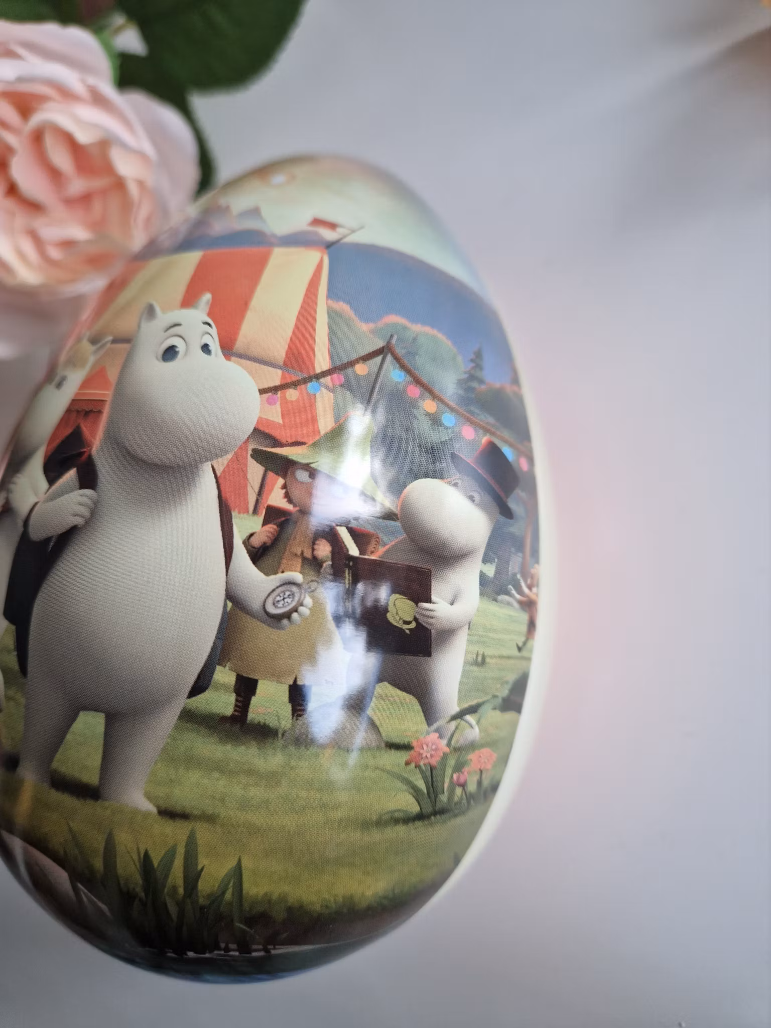 Gör påsken 2026 lite extra lyxig med ett mumin påskägg med ett valfritt namn på att ge bort till någon i din familj, släkt, vänner, kollegor, dina barn eller barnbarn med något gott i.