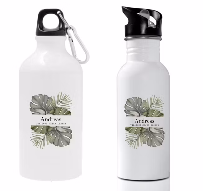 Mått: Vit vattenflaska 20 cm hög, 7 cm i diameter och rymmer 600 ml.