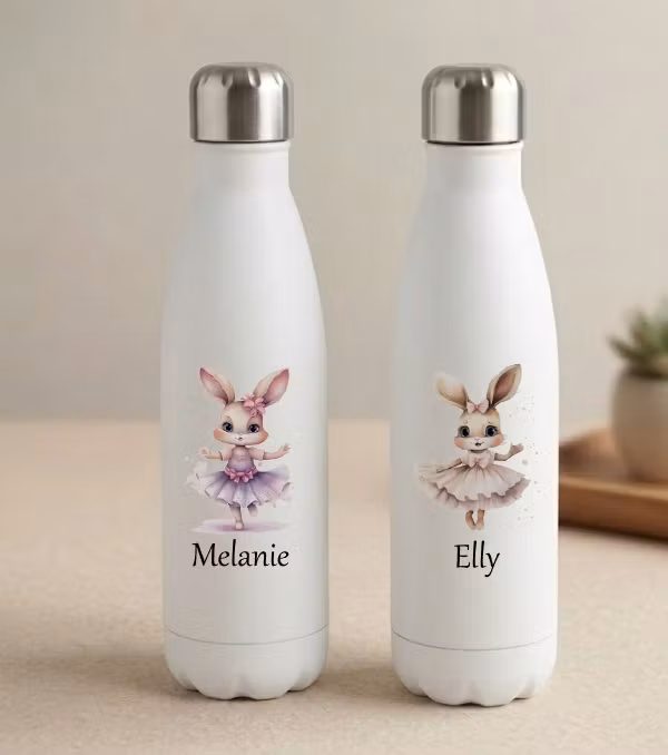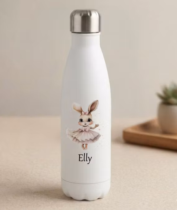 En personlig termos i rostfritt stål med våra kanin ballerinor och ett valfritt namn.