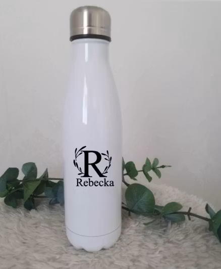En personlig termos i rostfritt stål som rymmer 500 ml med en valfri bokstav med kvistar eller bokstav med namn/efternamn med kvistar.